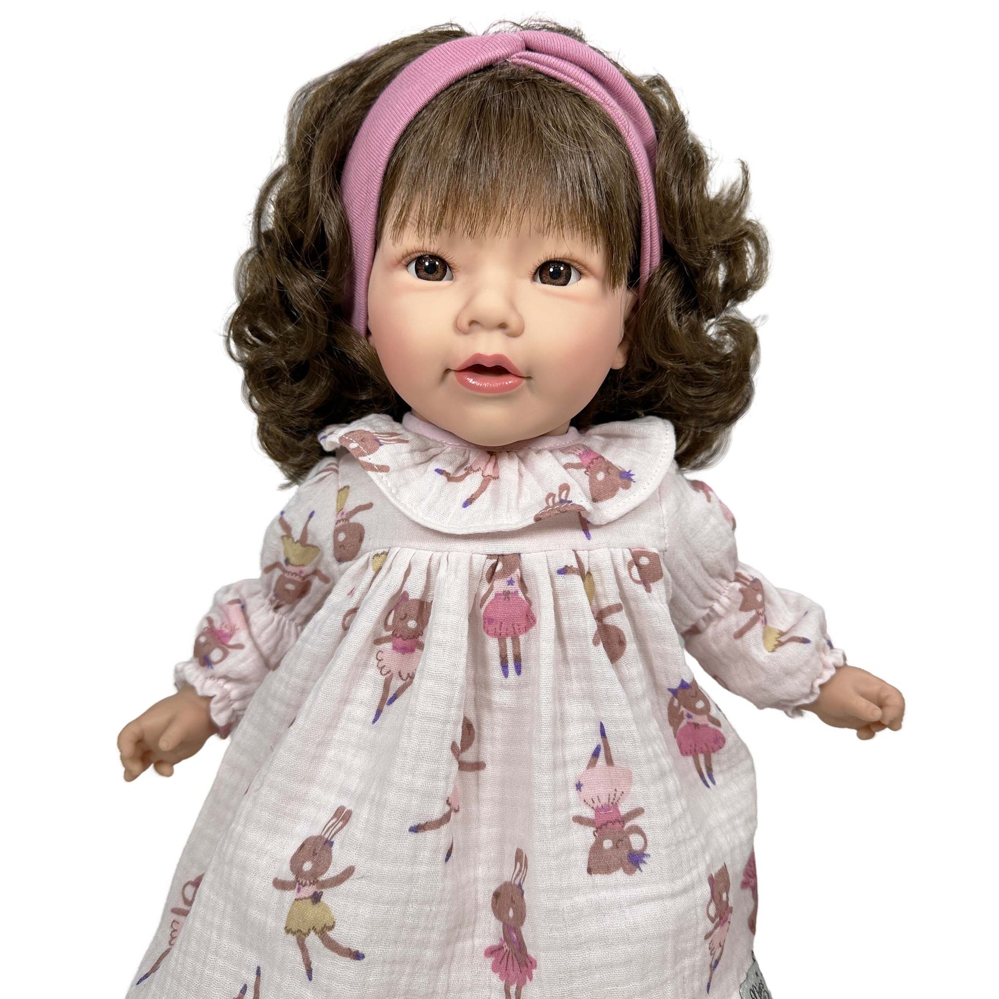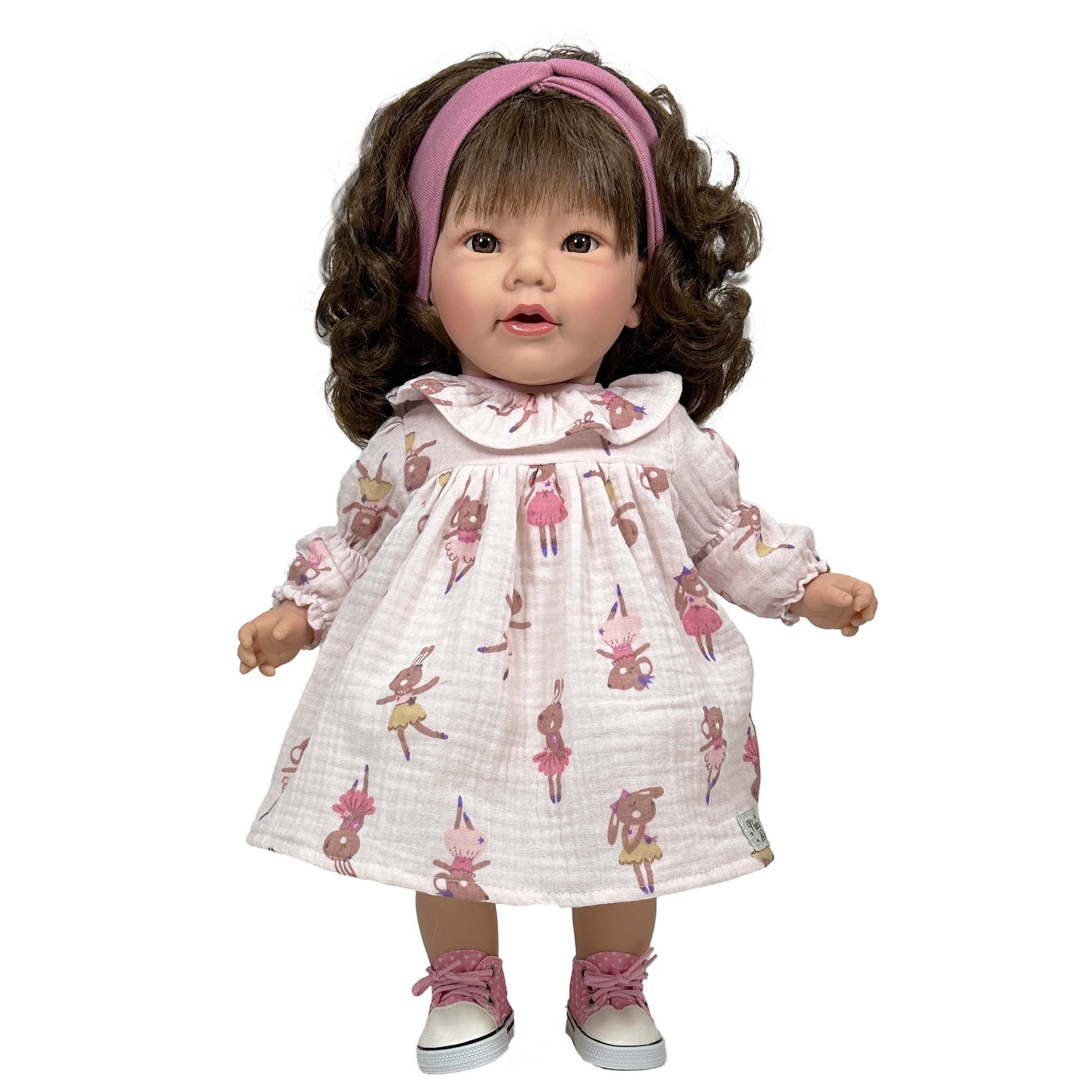 Descubre la magia de esta hermosa muñeca artesanal de 45 cm, fabricada en España con detalles que enamoran. Su pelo ondulado adornado con un lindo cintillo y su cuerpo blandito y articulado la hacen ideal para abrazarla y mimarla. Lleva un precioso vestido acompañado de unos estilosos zapatos que la hacen aún más especial. Cada detalle ha sido pensado para hacer de esta muñeca un regalo inolvidable, perfecto para quienes aprecian la calidad y el encanto artesanal. ¡Una preciosa muñeca que no puede faltar!