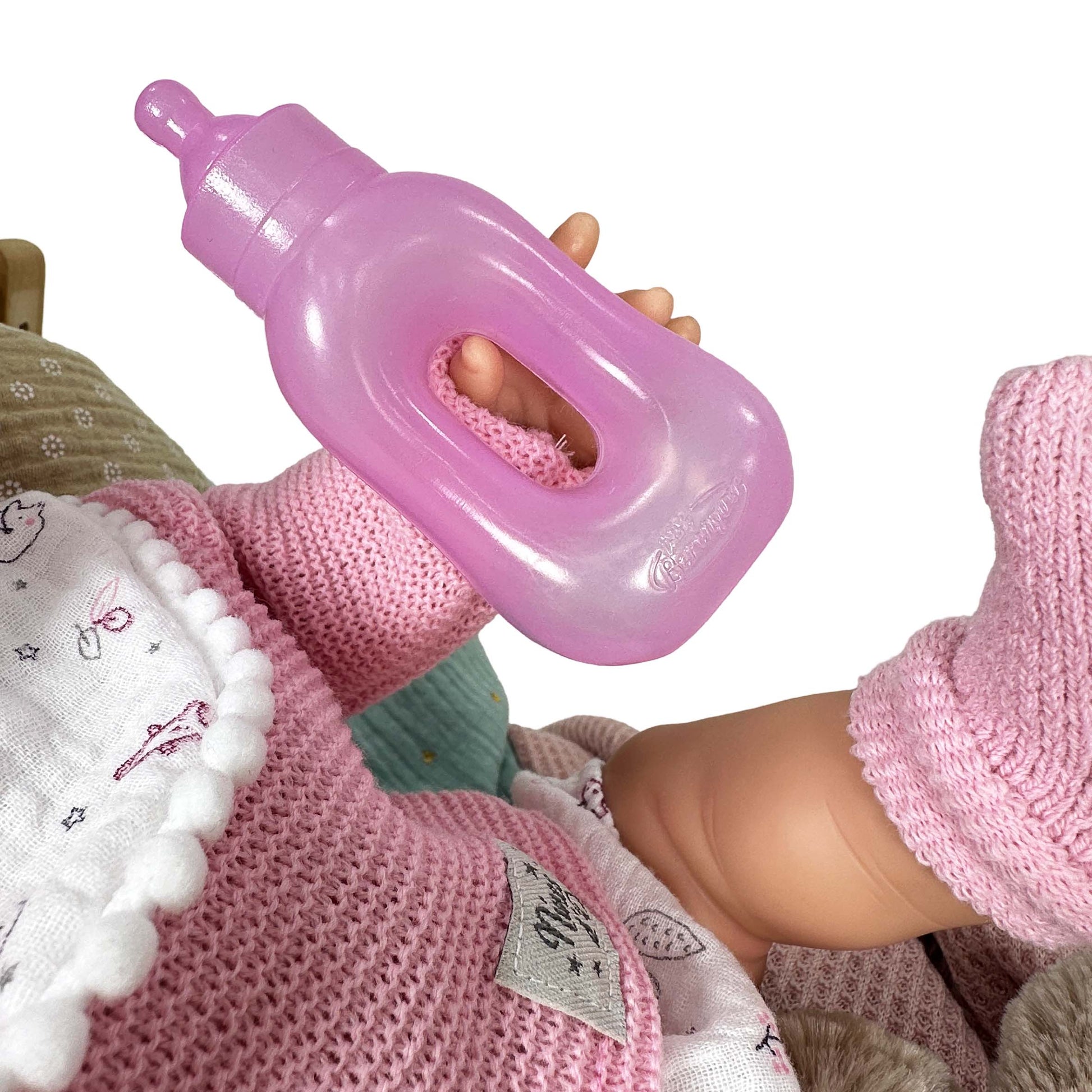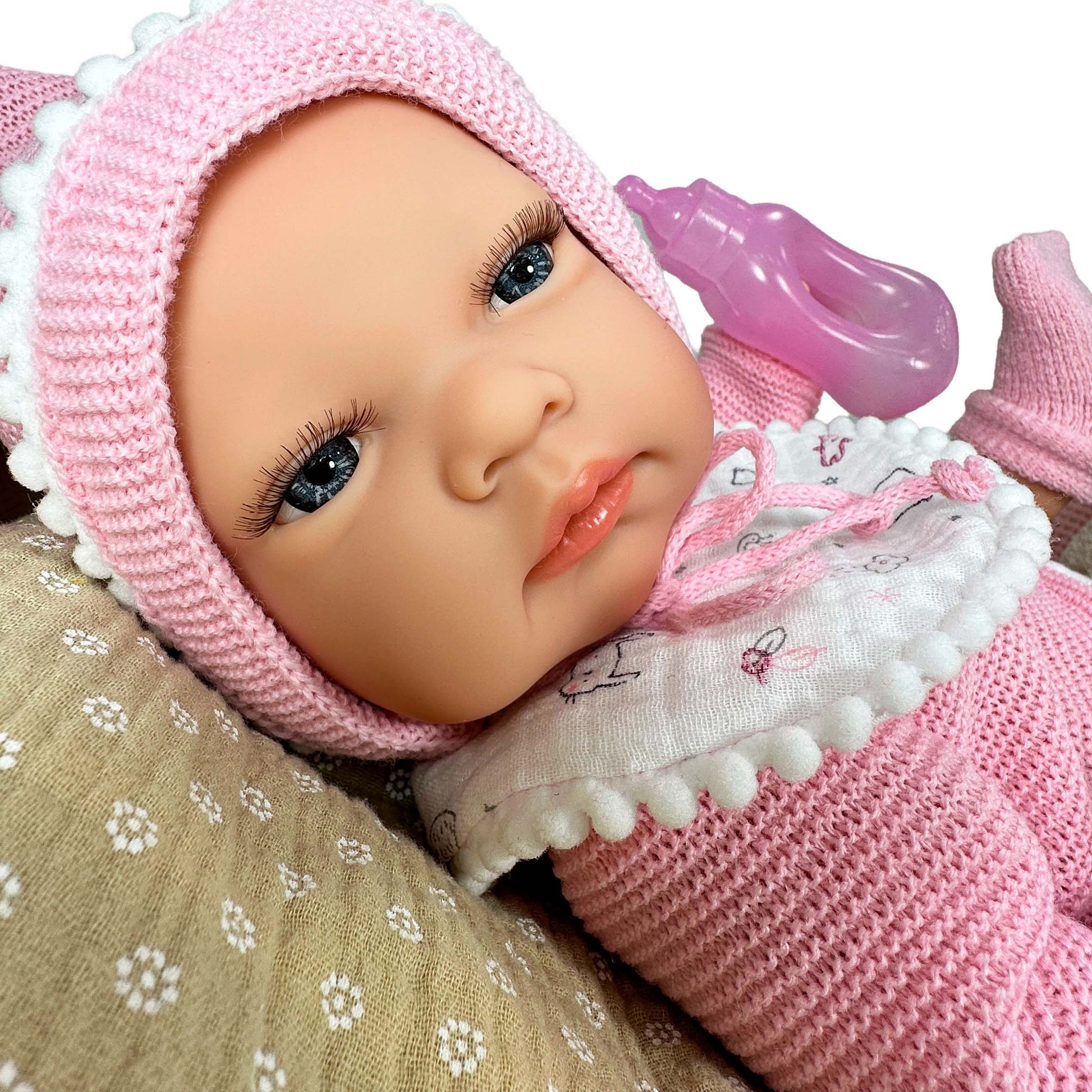Conoce a esta hermosa muñeca artesanal de 45 cm, fabricada en España con un nivel de detalle inigualable. Su cuerpo de vinilo articulado permite moverla y, ¡sí!, también bañarla, haciéndola aún más realista y divertida. Viste una encantadora ropa de punto con gorro a juego, y viene acompañada de un chupete con chupetero y una mamadera. Sexuada como una niña, y con sus preciosas pestañas, es perfecta para enseñar y jugar con autenticidad. Un regalo de calidad que encantará a quienes buscan belleza y detalles únicos en cada juego. ¡Es la compañera ideal para los momentos de imaginación y ternura!
